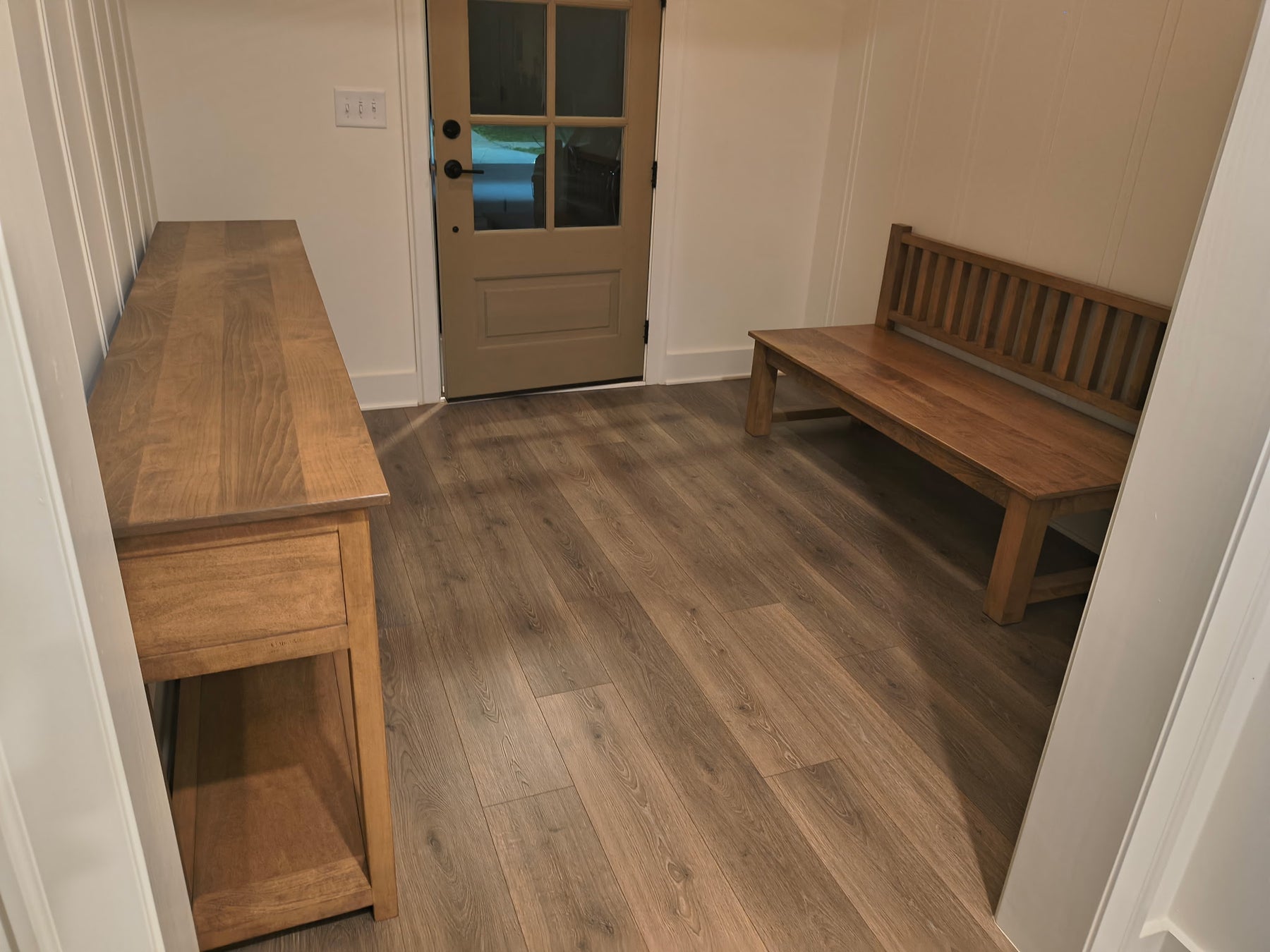 Test stain colors and wood types in your home before committing to a custom build.