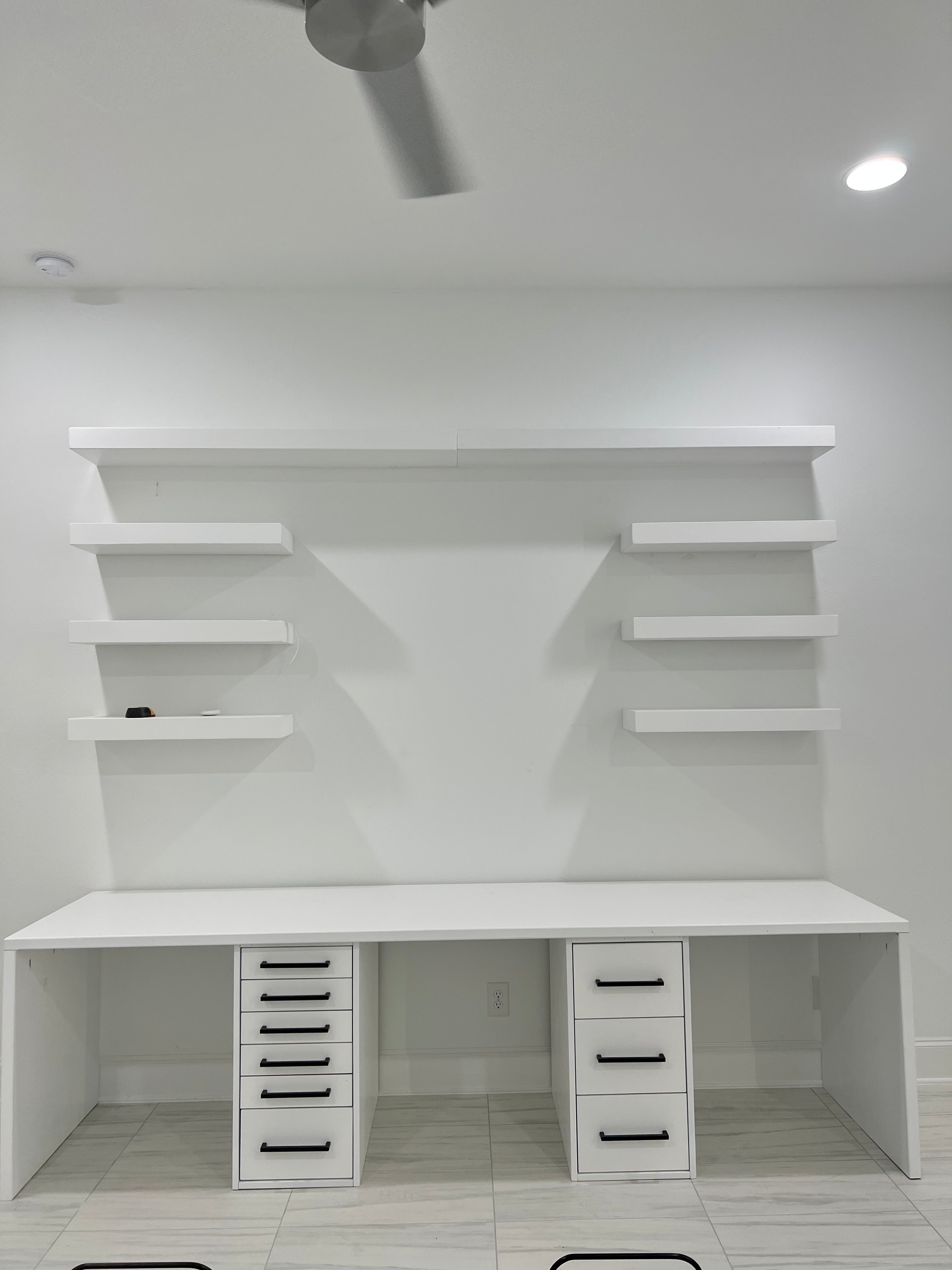 - (4) Floating Shelves: 41.5" L x 12" W x 3" H