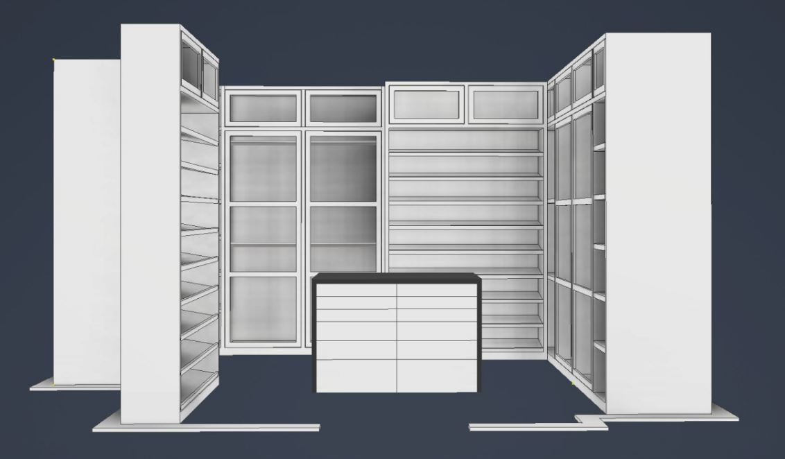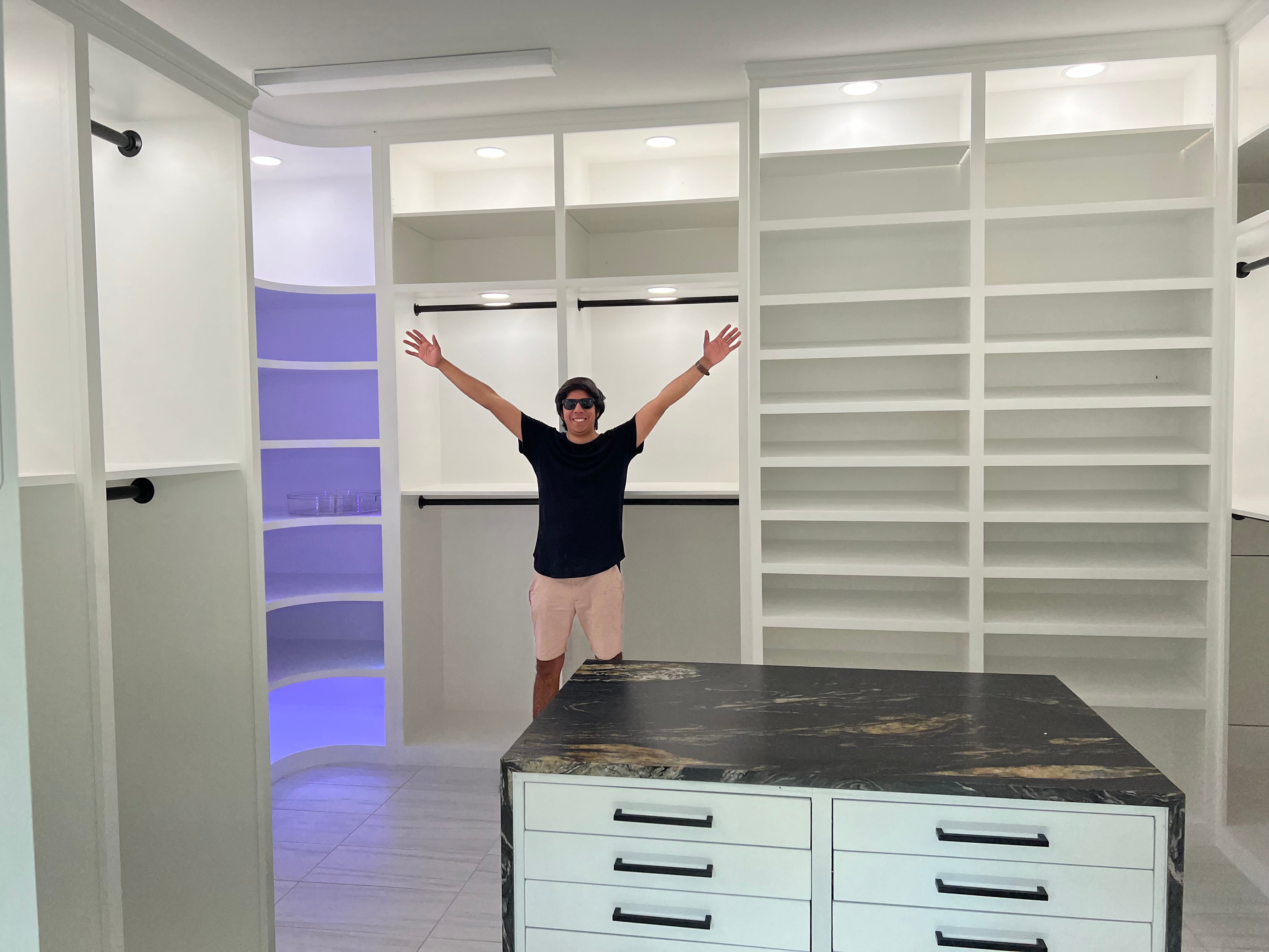 - Master Closet Island: 54" L x 36" D x 36" H
