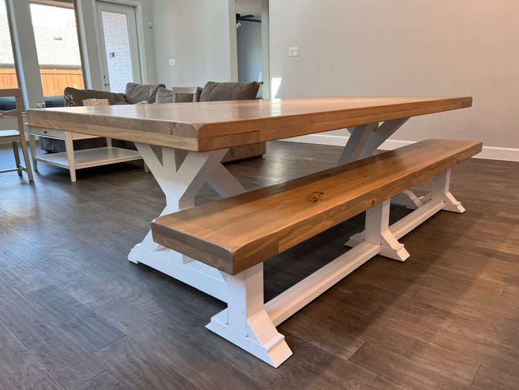 Each table is built to order from solid hardwood and designed for real-life living — durable enough for everyday use, yet refined enough for special gatherings. With clean lines, timeless style, and comfortable seating for 4 to 12, it fits beautifully into both modern and traditional spaces. The base detaches for easy delivery, and every piece is handcrafted in Texas by our small, skilled team.