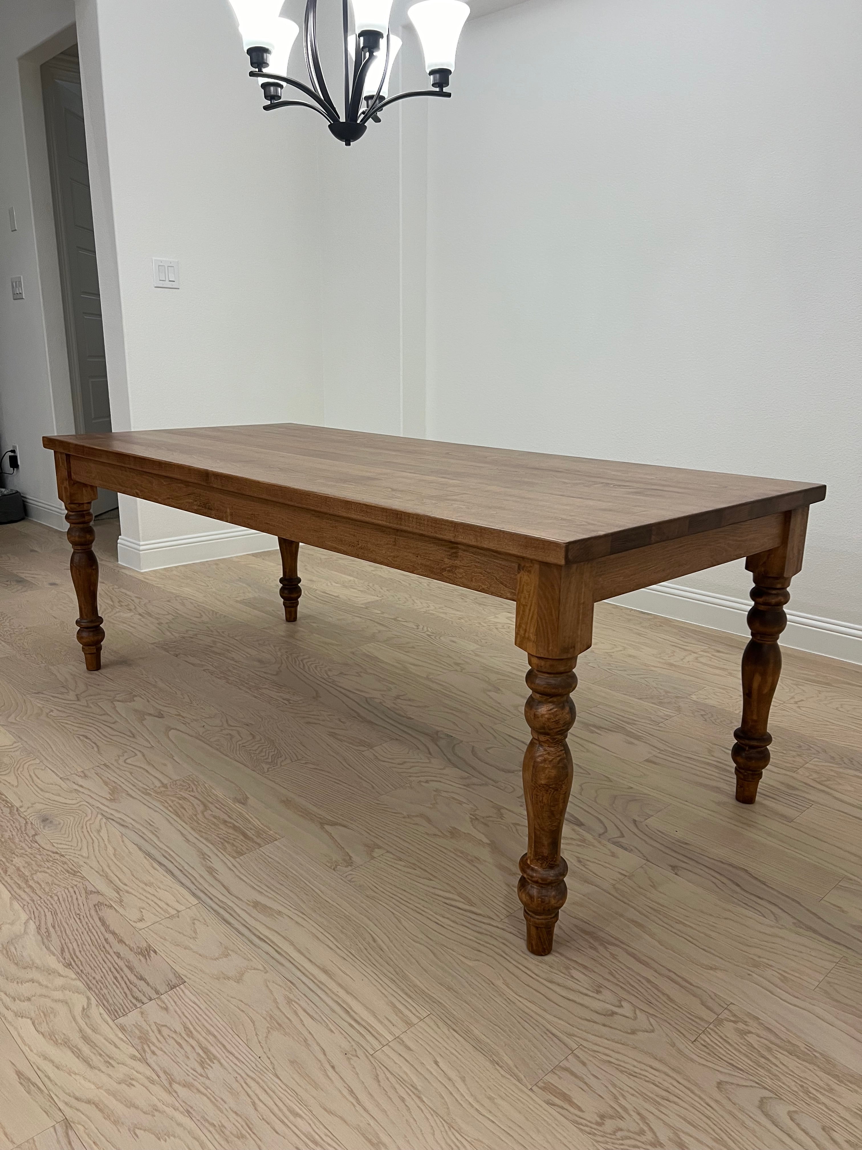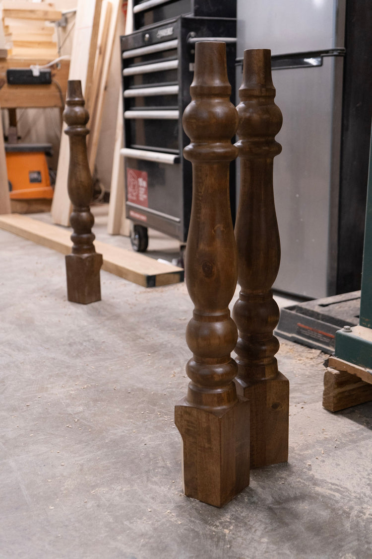 Each table is built by hand using solid woods, showcasing the natural beauty, warmth, and unique grain of the wood. The Farmhouse Turned Leg Dining Table encourages conversation and connection—perfect for everything from cozy family dinners to hosting friends.